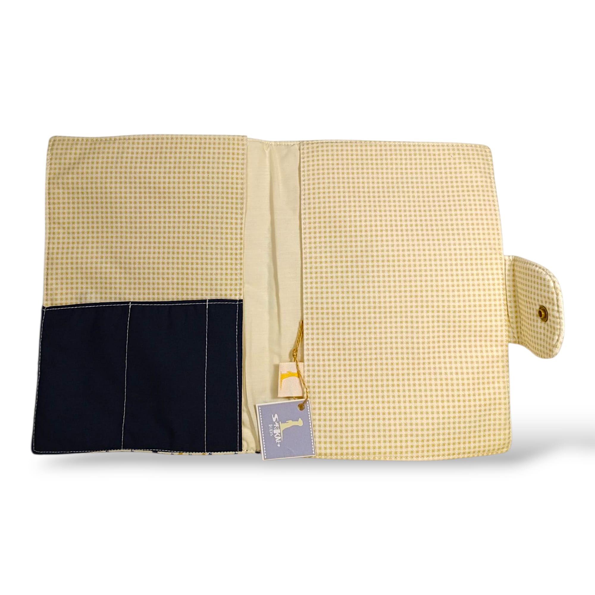 Nuestro portadocumentos es acolchado y tiene dos bolsillos. Podrás guardar la cartilla, o libro de nacimiento, tarjetas y un bolígrafo. No tienes excusa para tener todos los documentos de tu/tus peques bien organizados. Se cierra con un snap con el fin de proteger su interior y es de lo más práctico, te encantará!