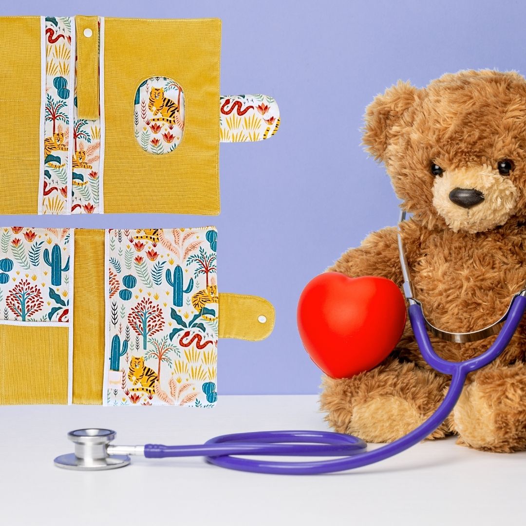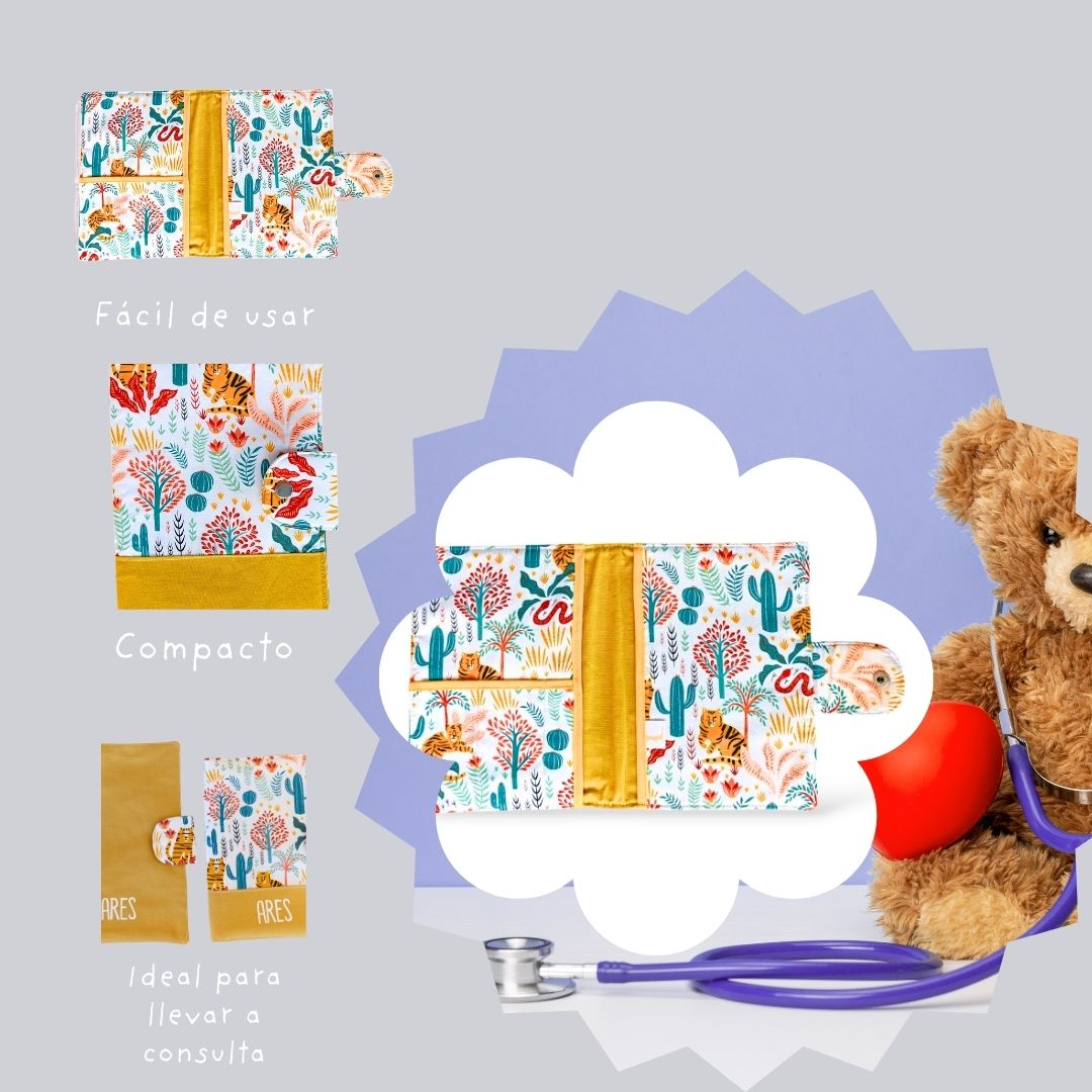 Nuestro portadocumentos es acolchado y tiene dos bolsillos. Podrás guardar la cartilla, o libro de nacimiento, tarjetas y un bolígrafo. No tienes excusa para tener todos los documentos de tu/tus peques bien organizados. Se cierra con un snap con el fin de proteger su interior y es de lo más práctico, te encantará!